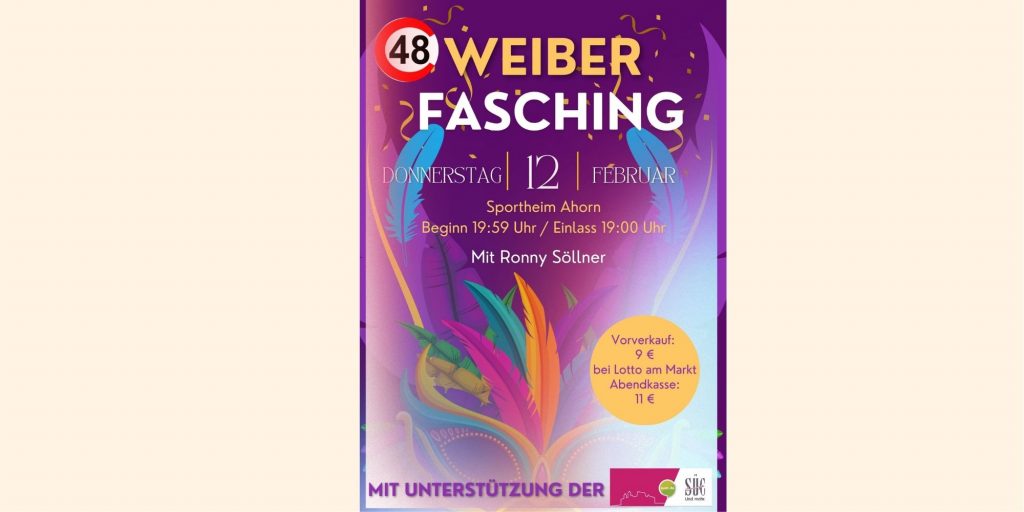 Am Donnerstag, 12. Februar, steigt im Sportheim Ahorn der Weiberfasching. Einlass ist ab 19:00 Uhr, los geht’s um 19:59 Uhr. Freut euch auf beste Stimmung,…