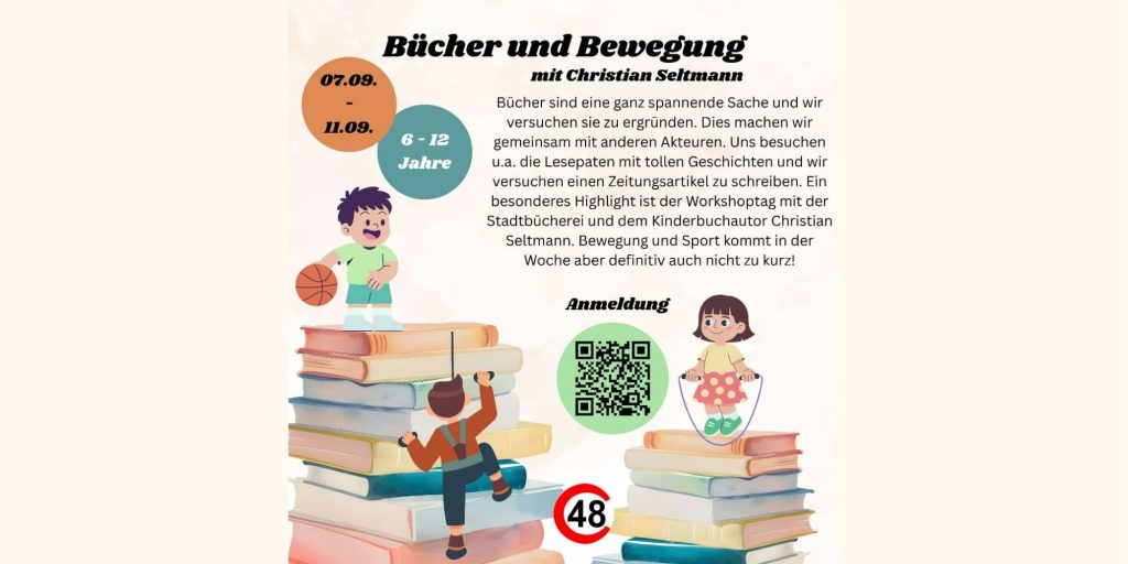 Sommer, Sonne, Bücher und Bewegung!In unserer Sommerfreizeit dreht sich alles um spannende Geschichten und aktive Erlebnisse. Gemeinsam entdecken wir die Welt der Bücher, unterstützt von…