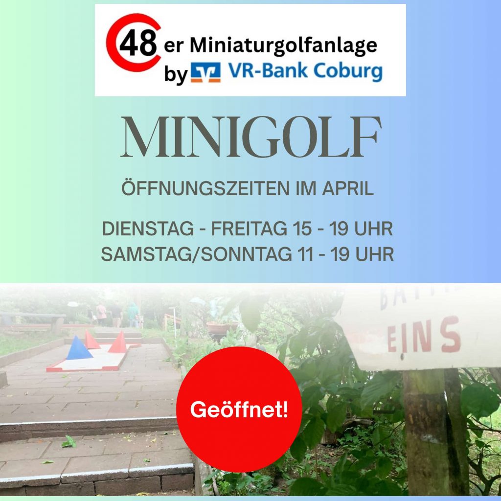 Die Minigolfanlage des TV 1848 Coburg ist wieder geöffnet und lädt zu Spiel, Spaß und entspannten Stunden im Grünen ein! Ob mit Familie, Freunden oder…