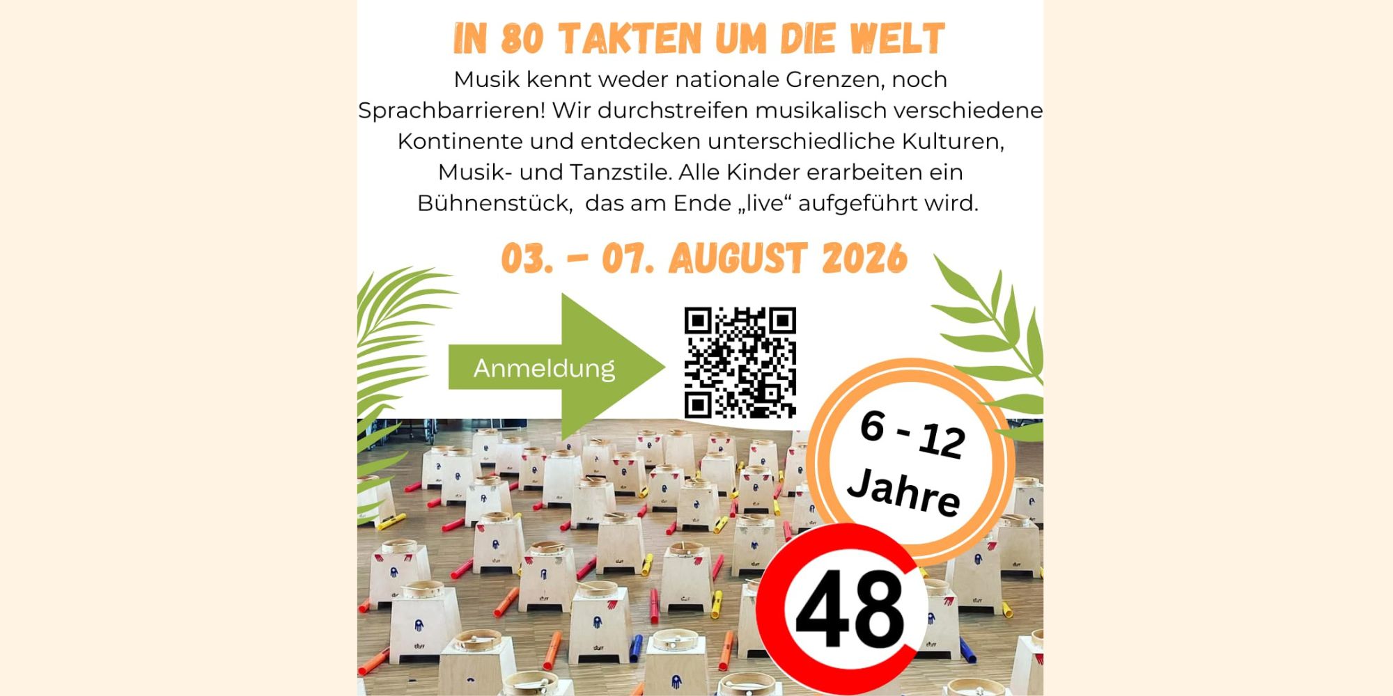 Bei unserer musikalischen Weltreise verwandeln wir die gesamte Woche in ein grandioses Trommelmitmach-Theater! Musik kennt weder nationale Grenzen, noch Sprachbarrieren! Mehrere spannende Tage durchstreifen die Kinder musikalisch verschiedene Kontinente und